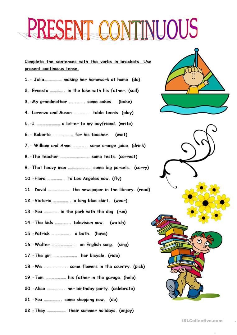 Present Continuous Tense Worksheets often include exercises such as completing sentences with the correct form of the verb in the present continuous tense. For example, students may be given a sentence like “She _________ (read) a book” and they have to fill in the blank with the appropriate form of the verb “read.” These exercises help reinforce the rules and patterns of the present continuous tense.